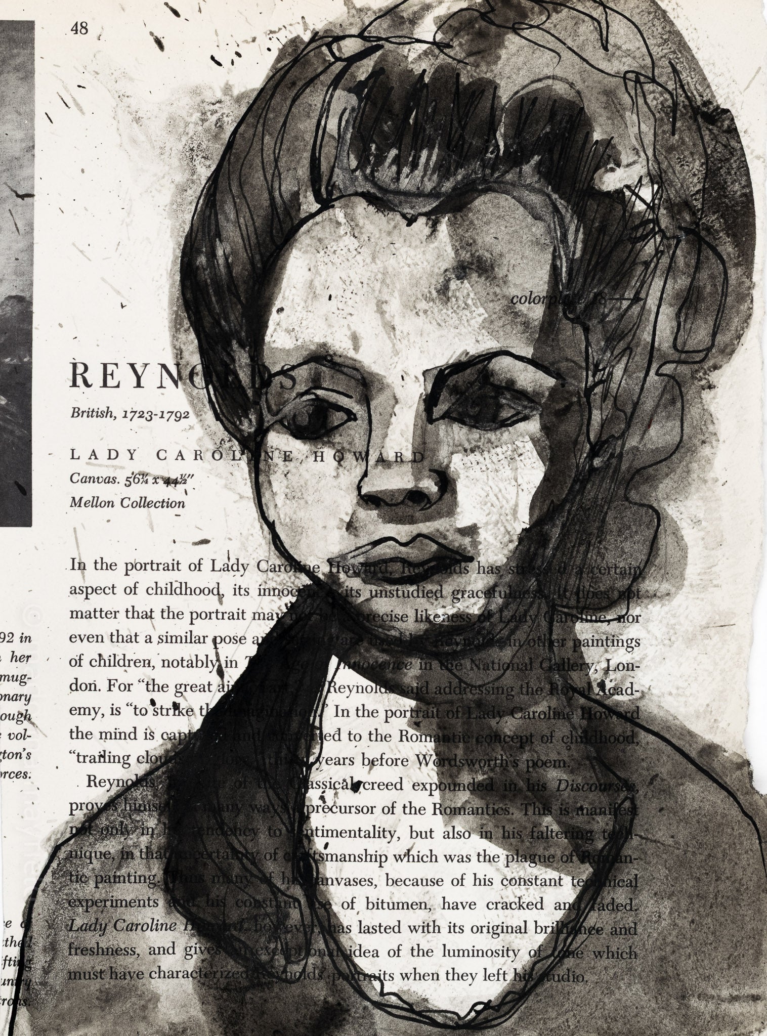 This work is an original ink painting on an antique book page. It is part of my ongoing portrait series.